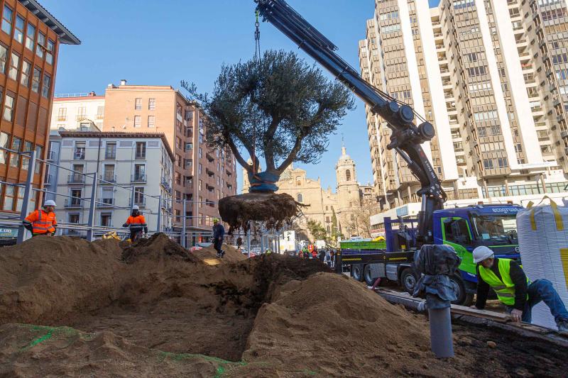 La plaza de Salamero entra en la recta final de sus obras con el regreso dos ejemplares de olivo