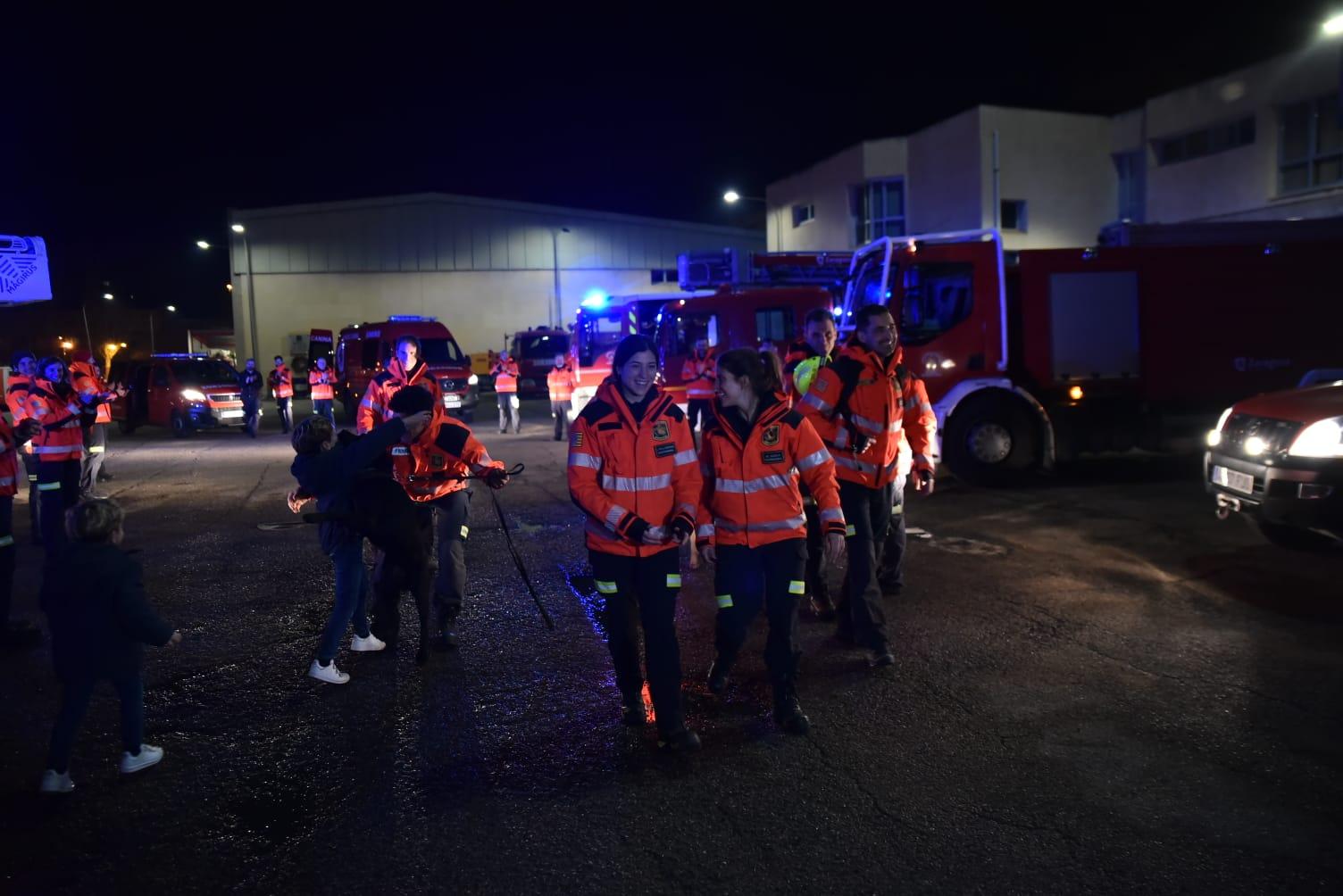 Los Bomberos desplazados a Turquía regresan a Zaragoza entre aplausos, sirenas y abrazos