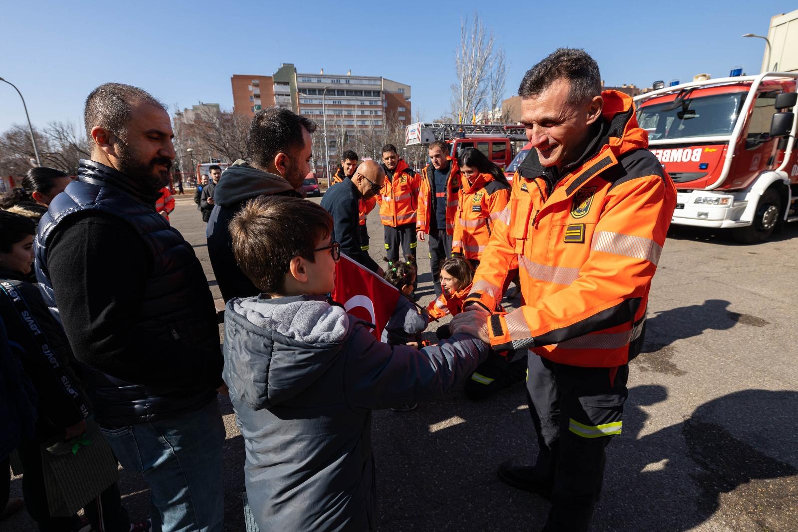 La comunidad turca que reside en la capital aragonesa, no son más de cincuenta, quiso agradecer ayer a los Bomberos de Zaragoza las labores de rescate realizadas en Turquía tras los terremotos que han asolado el país dejando miles de víctimas.