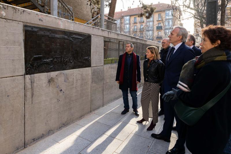 Además se han limpiado los dos murales de bronce realizados por Ignacio Mayayo y Antonio Germán y colocados en 1990 en la pared del Instituto Pedro de Luna. Uno de ellos reproduce el aspecto que tenía la Puerta de Valencia en el momento de su derribo y el otro la fachada de la antigua Universidad, demolida en 1969.