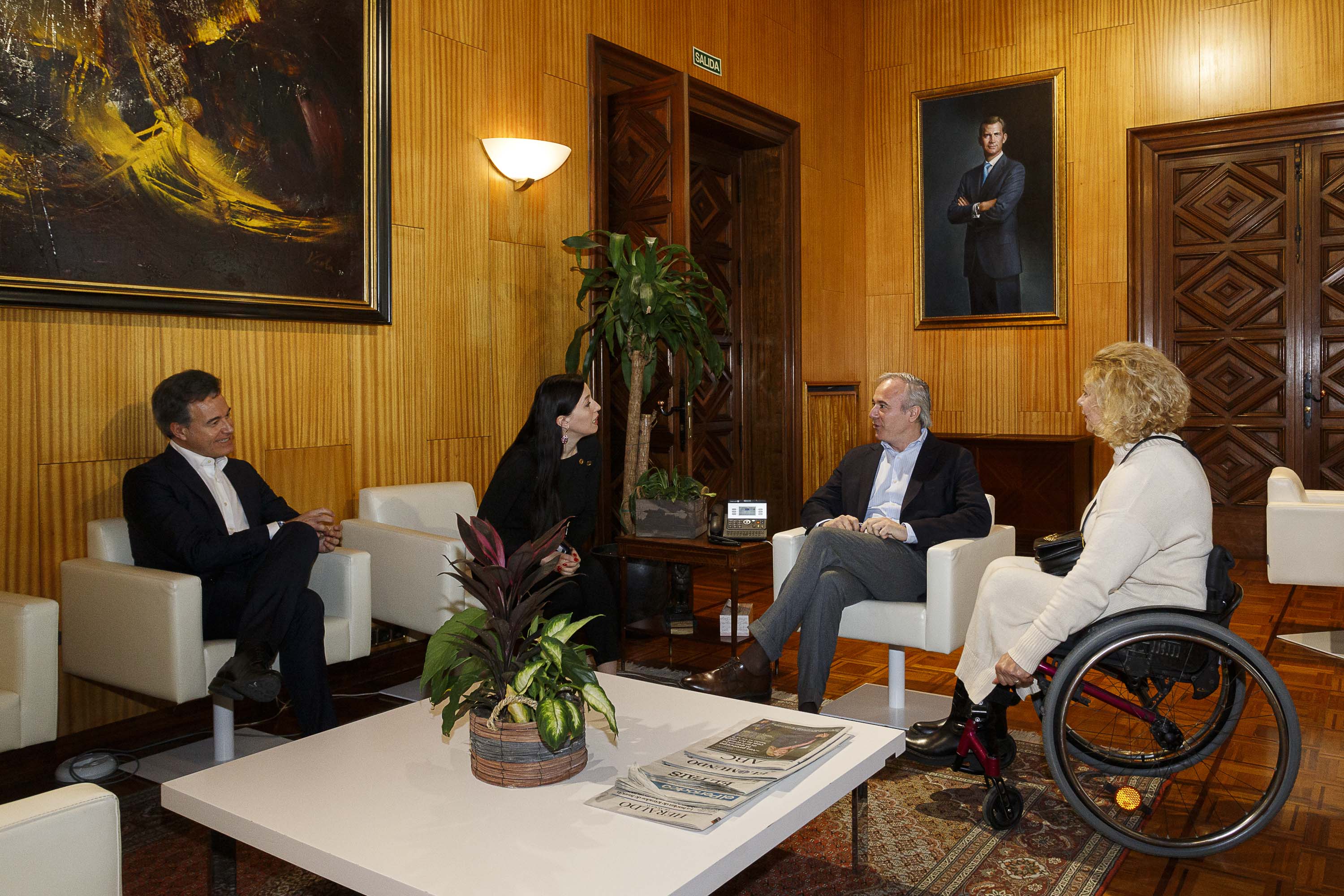 El alcalde de Zaragoza, Jorge Azcón, y el consejero de Urbanismo y Equipamientos, Víctor Serrano, han recibido hoy a la presidenta de la Asociación de Ucranianos Residentes en Aragón, Alina Klochko, y a la exnadadora paralímpica Olena Akopyan, quien huyó de su país con la ayuda de la aragonesa Teresa Perales y reside en Zaragoza desde hace marzo de 2022.