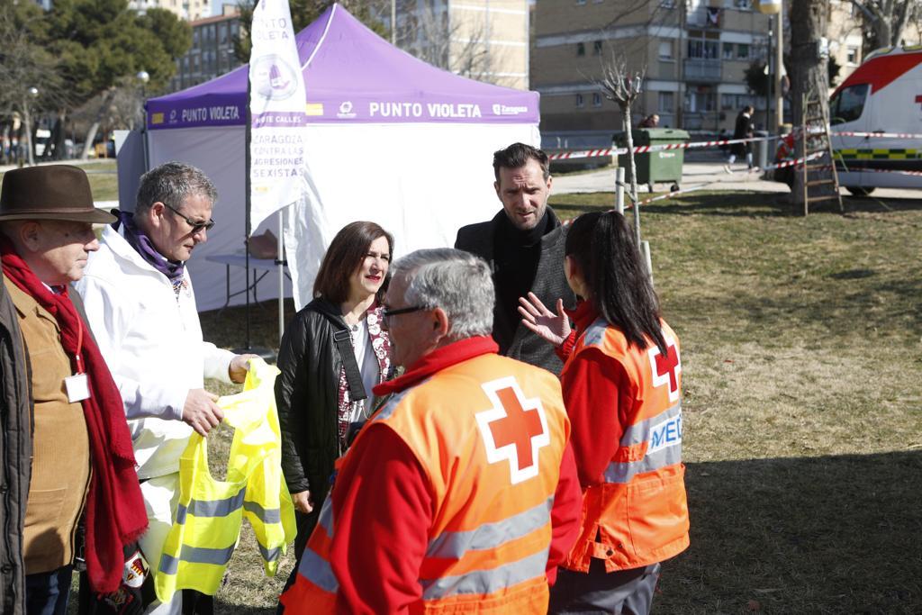 La vicealcaldesa Sara Fernández, y el consejero de Participación y Relación con los Ciudadanos, Javier Rodrigo, acompañados por el presidente de la FABZ, Manuel Arnal, han realizado un recorrido por los puestos antes de recibir las reivindicaciones vecinales sobre el escenario, una vez que ha llegado al parque la Marcha de los Barrios.