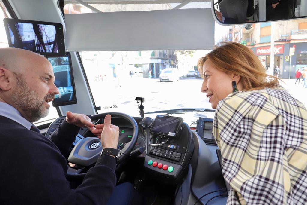 Natalia Chueca y Valentín Alonso, director general de Avanza, han sido los encargados de dar a conocer todos los detalles del entorno de pruebas en la línea 40 del transporte público de Zaragoza, en la avenida de San José, que permitirá el testeo e integración de todos los sistemas desarrollados
