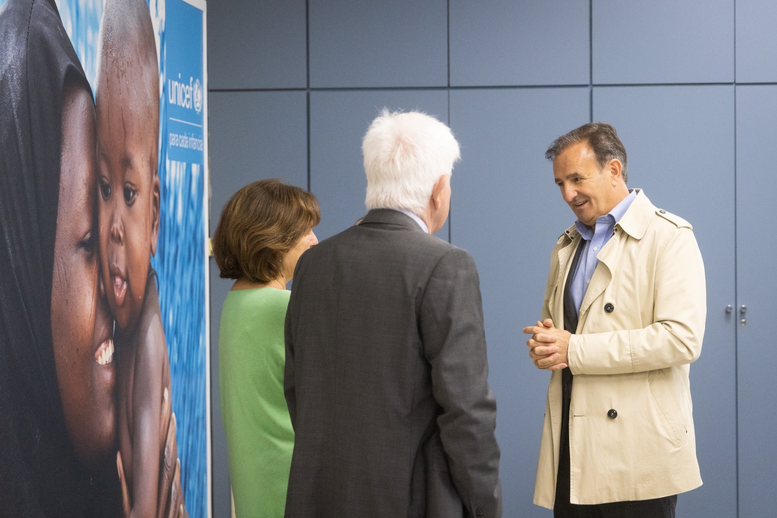 El consejero de Acción Social y Familia, Ángel Lorén, ha visitado hoy las instalaciones de UNICEF Aragón, donde se ha reunido con su presidente José Manuel Pomar