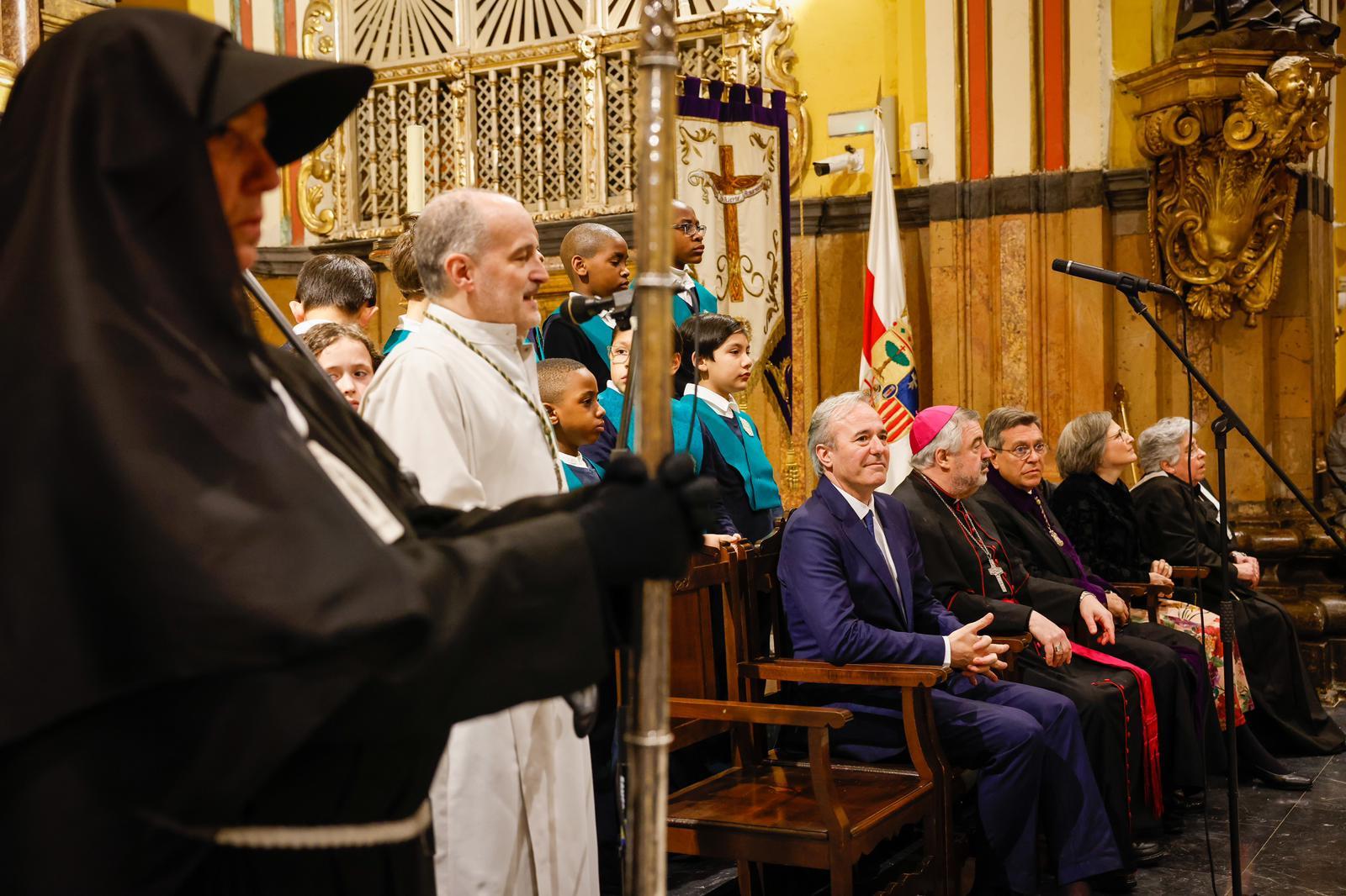 El alcalde de Zaragoza, Jorge Azcón, ha asistido al tradicional pregón de la Semana Santa, que este año, por causa de la lluvia, ha tenido que llevarse a cabo en el interior de la Capilla de Santa Isabel de Portugal.