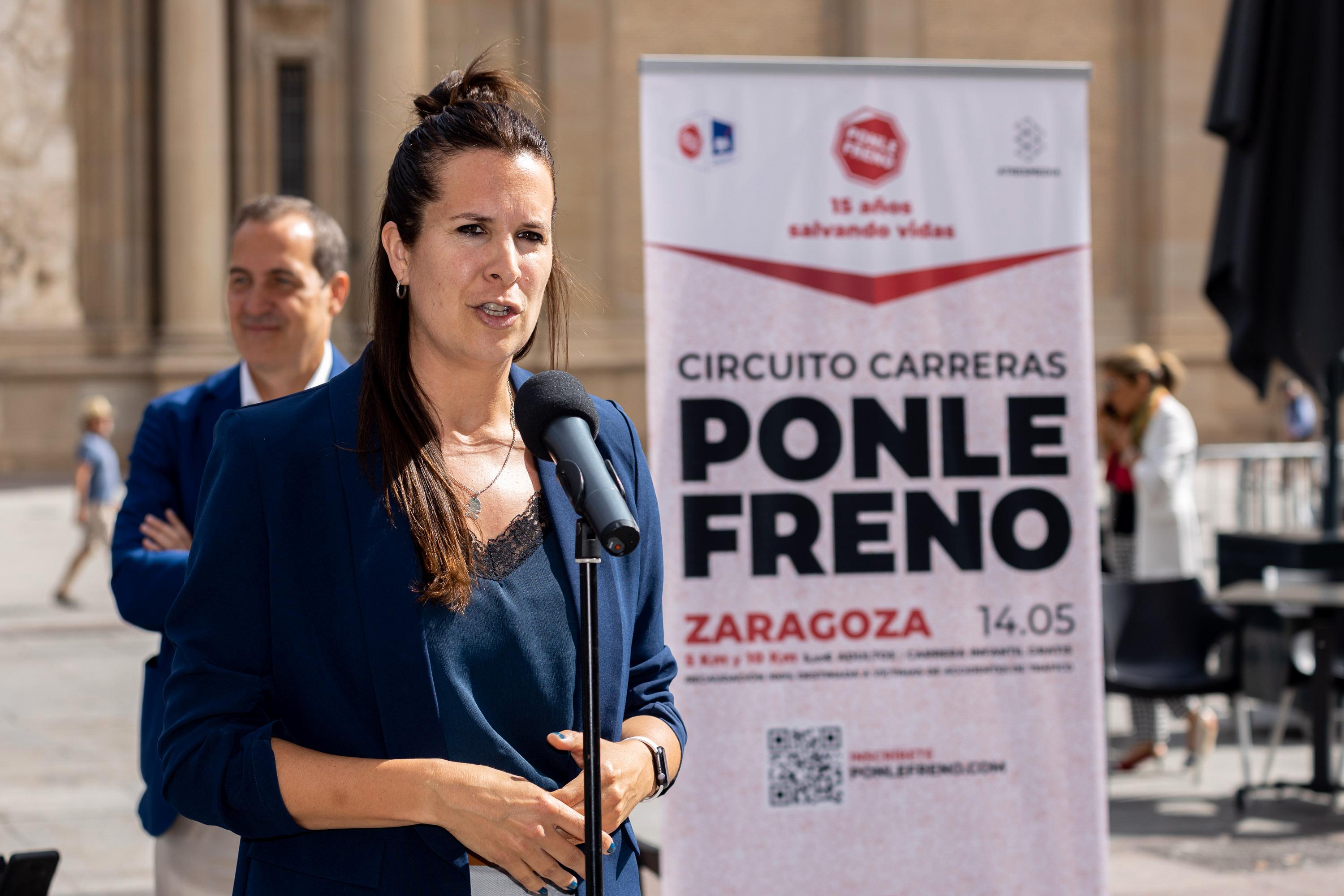 El evento ha sido presentado hoy por la concejala de Deportes, Cristina García; la directora de Comunicación de Ponle Freno, Natalia Rico; el director del Centro de Estudios y Opinión Ponle Freno – AXA, Iñaki Lerga; el bicampeón del mundo de maratón, Abel Antón, y Francisco Ureta, delegado autonómico de la Asociación para el Estudio de la Lesión Medular Espinal (AESLEME) en Aragón, a la que se va a destinar la recaudación íntegra.
