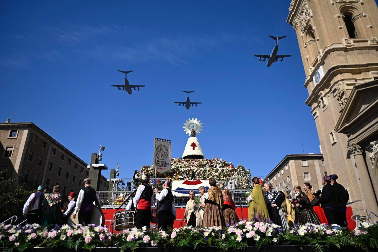 La plaza del Pilar ha sido, como viene siendo habitual, uno de los lugares más concurridos, y según los datos aportados por el Puesto de Mando Avanzado la previsión de ocupación desde el pregón hasta las 24 horas de horas de hoy es que se alcancen los cinco millones de personas. Además, como epicentro de la ciudad, la plaza del Pilar celebra algunos de los actos más tradicionales, como son la Ofrenda de Flores del 12 de octubre, que este año ha batido récord con un total de 145.000 oferentes (141.500 el pasado año), y unas 350.000 personas pasaron por la plaza, a lo que se suma el público que acudió a las actuaciones de jotas.