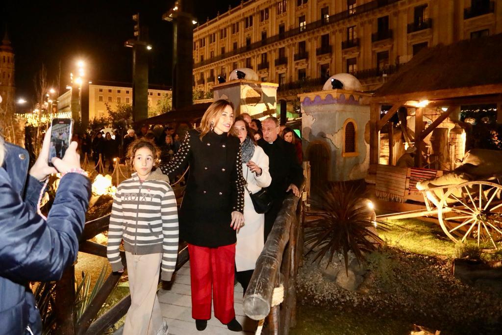 Acompañada por una cuenta atrás dicha al unísono por la multitud congregada en la plaza del Pilar, la alcaldesa, Natalia Chueca, ha sido la encargada de presionar el botón para encender toda la luminaria navideña de la ciudad, tras escuchar los villancicos de los Infanticos del Pilar, cuyas voces desafiaron al frío entonando el tradicional villancico Ay del Chiquitin.
