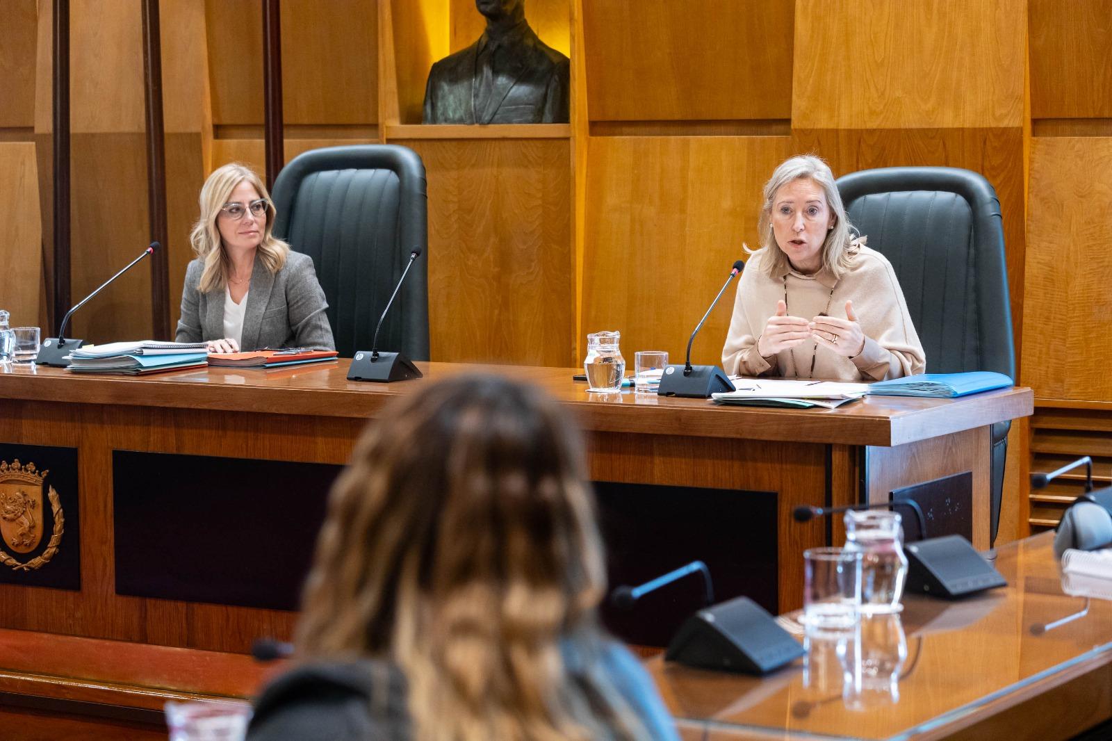 La consejera de Hacienda y Fondos Europeos, Blanca Soláns, y la concejala delegada de Contratación y Bienes Municipales, Pilar Cortés, han presentado el presupuesto de esta área, que conjuga la bajada de impuestos con la reducción de la deuda y el refuerzo de la inversión