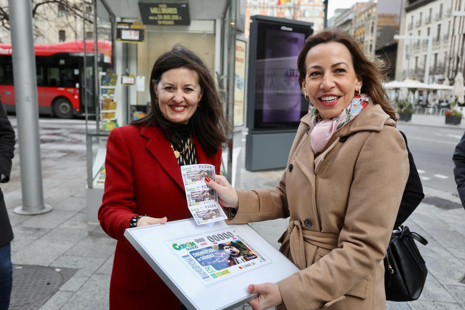 La alcaldesa de Zaragoza, Natalia Chueca, y la delegada de la ONCE, Raquel Pérez, lo han presentado esta mañana en el quiosco situado en la Plaza de España