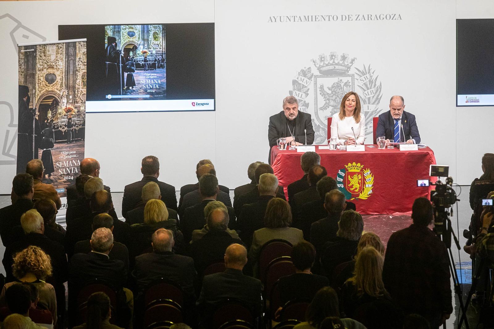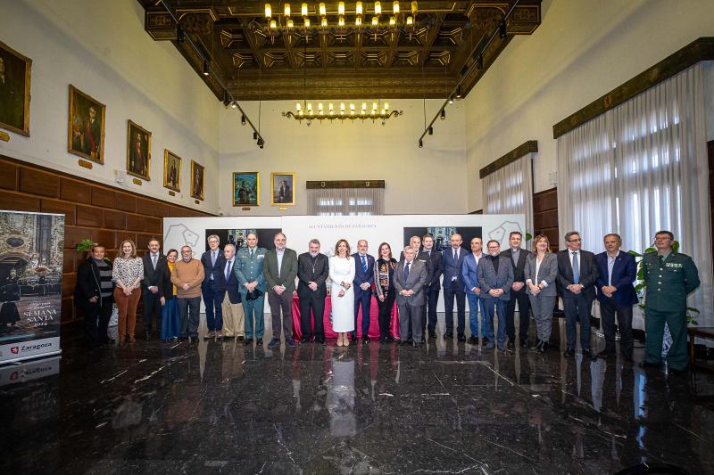 La alcaldesa Natalia Chueca ha sido la encargada de hacer la presentación oficial en el Salón de Recepciones del Consistorio, donde ha hecho una llamamiento a la ciudadanía para "vivirla con todos los sentidos". "Zaragoza estremece a ritmo de nuestros tambores, se emociona con las tallas devocionales, se perfuma con el incienso y las flores frescas de los pasos y, en definitiva, Zaragoza vive una semana llena de Pasión en todos los sentidos", ha incidido.