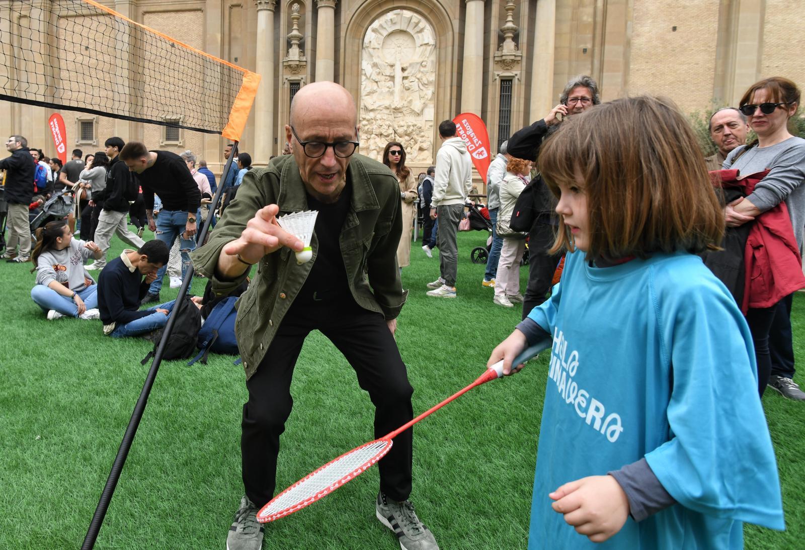 La plaza del Pilar se ha convertido este domingo en un espacio privilegiado para disfrutar del deporte, con el evento Hola Primavera organizado por el Ayuntamiento de Zaragoza. Una iniciativa que se enmarca en el proyecto La Plaza Más Viva, que busca convertir este enclave en un lugar "vivo, donde siempre pasen cosas", tal y como explicó la alcaldesa Natalia Chueca.