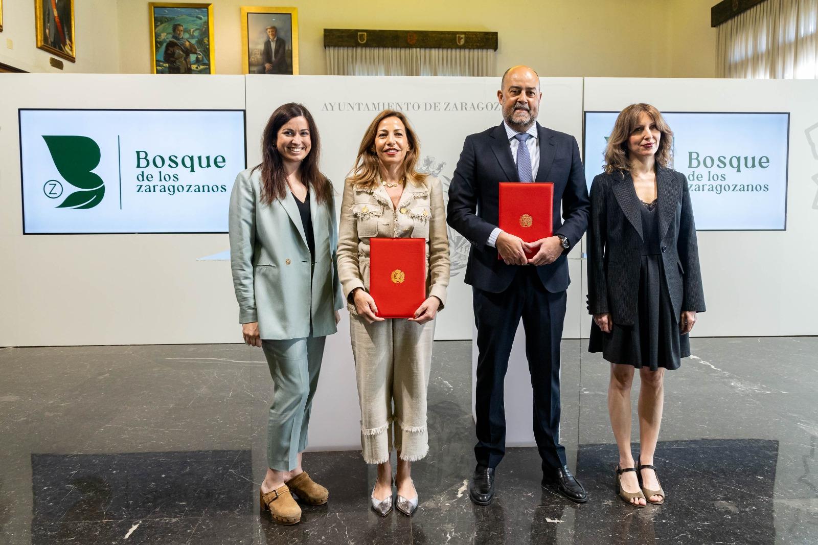 La alcaldesa ha puesto en valor que lo que hace diferente al Bosque de los Zaragozanos: 'es un proyecto hecho por y para los zaragozanos, construido entre todos porque de lo que se trata es de dejar un legado mejor para las próximas generaciones y eso nos implica a todos. La firma de este convenio es un buen ejemplo de ello'.