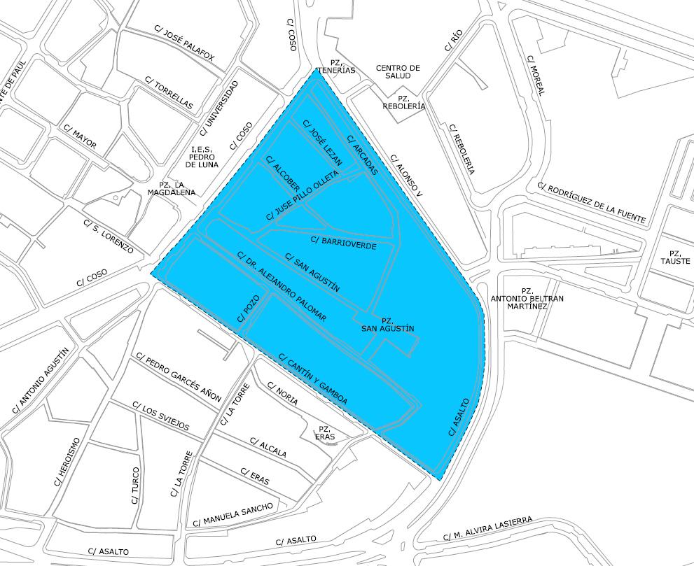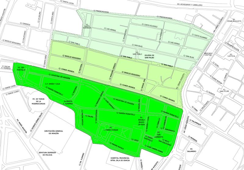En el entorno de Zamoray – Pignatelli, habrá una zona prioritaria de actuación, delimitada por las calles Conde Aranda y Madre Rafols, aunque se extenderá complementariamente hasta Predicadores.