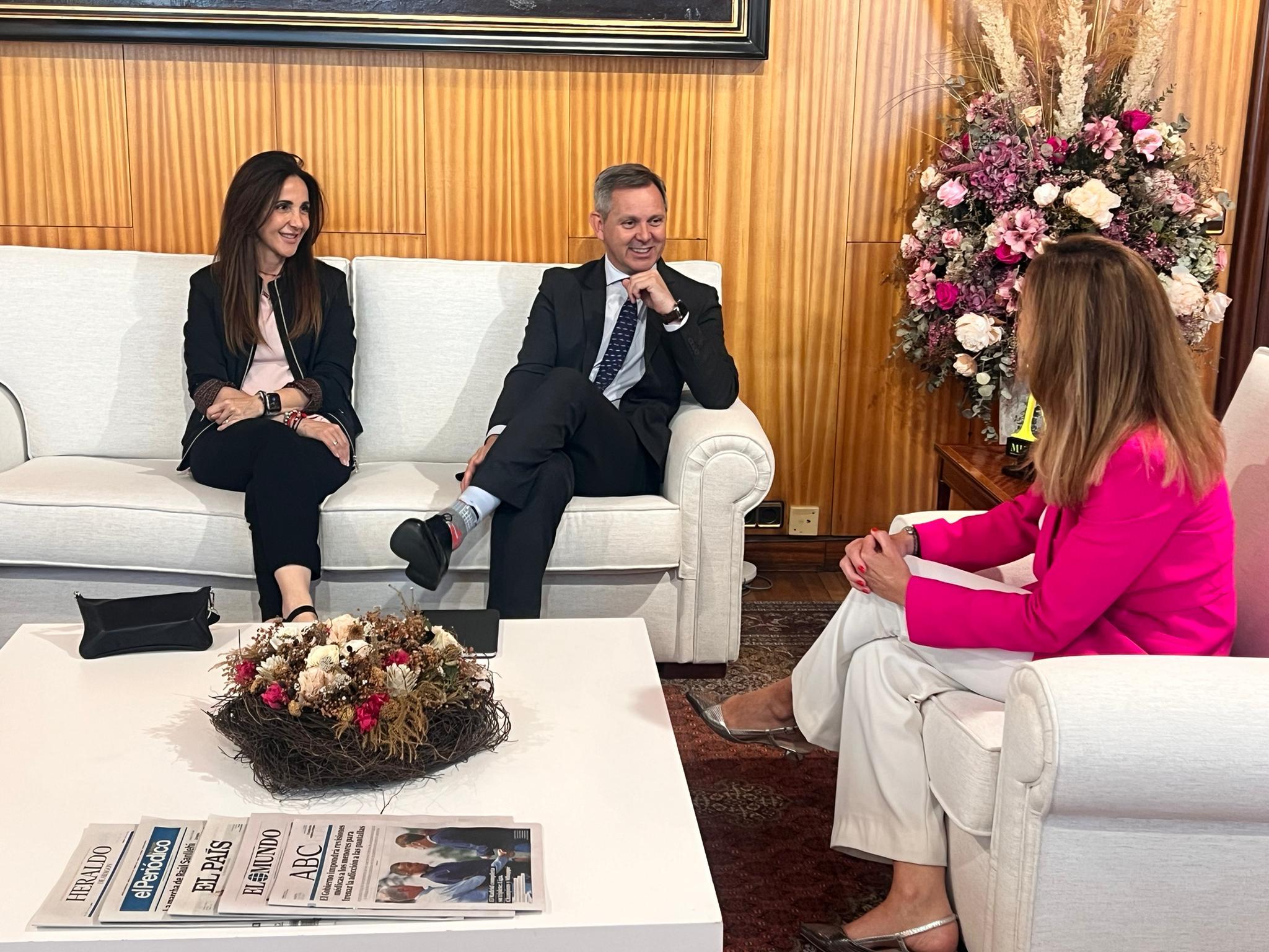 La alcaldesa de Zaragoza, Natalia Chueca, mantuvo ayer un encuentro institucional con el presidente de Mercasa, José Miñones, en el Ayuntamiento de Zaragoza para abordar y compartir su visión sobre la estrategia que permita fomentar algunos de los proyectos de Mercazaragoza.