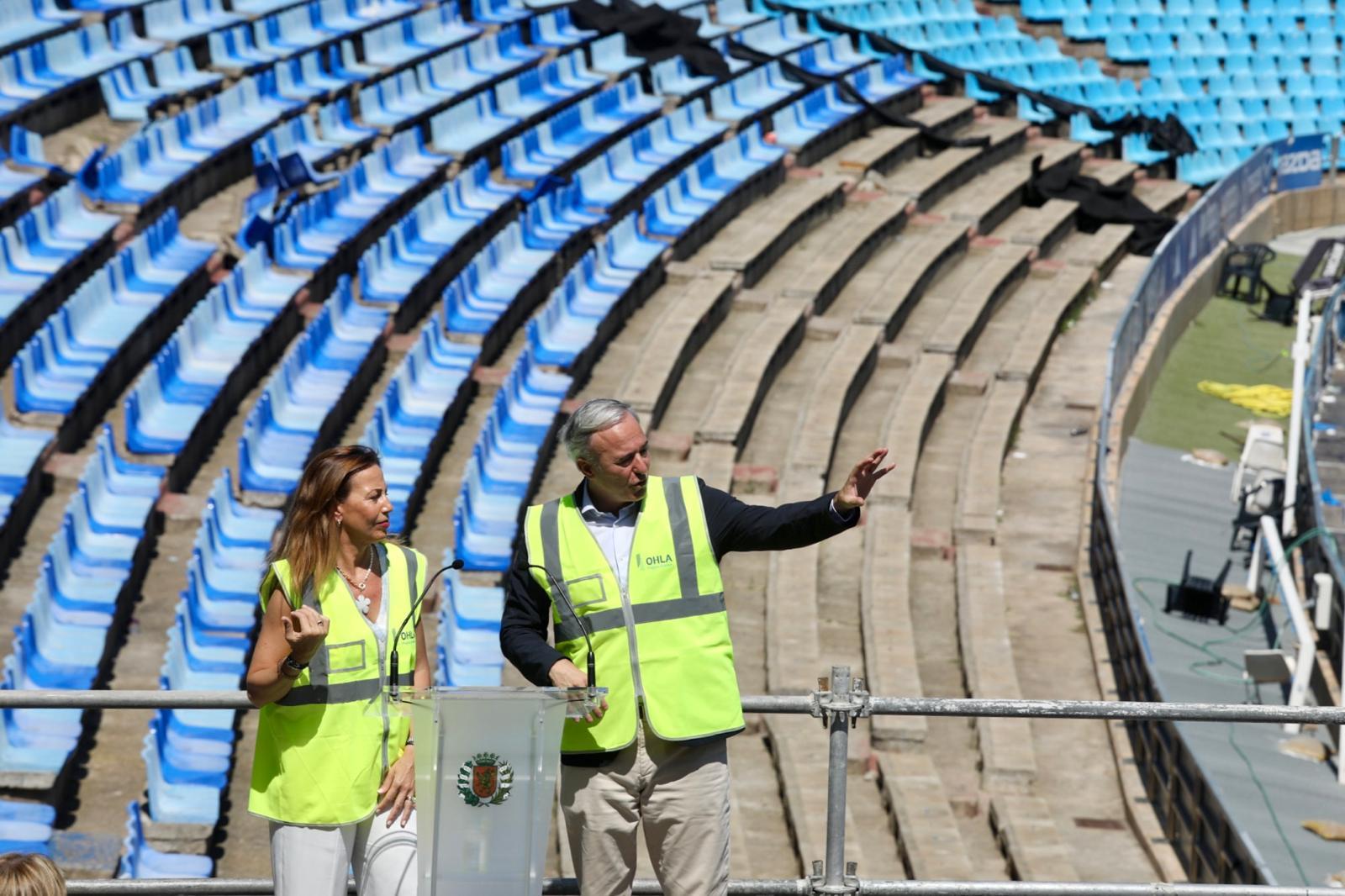 Así lo han comprobado esta mañana los máximos dirigentes de las entidades que conforman la sociedad, con una visita a las obras realizada por el presidente del Gobierno de Aragón, Jorge Azcón; la alcaldesa de Zaragoza, Natalia Chueca; y el director general del Real Zaragoza, Fernando López. Allí han podido comprobar las tareas iniciadas en esta Fase 1A que ejecuta la UTE OHLA – Deltapunt 3000 tras adjudicarse la actuación mediante concurso público por un valor de 3.119.893,34 euros, un millón menos del tipo máximo de licitación, y bajo la dirección facultativa de las obras a cargo de Idom Consulting, Engineering, Architecture SAU.