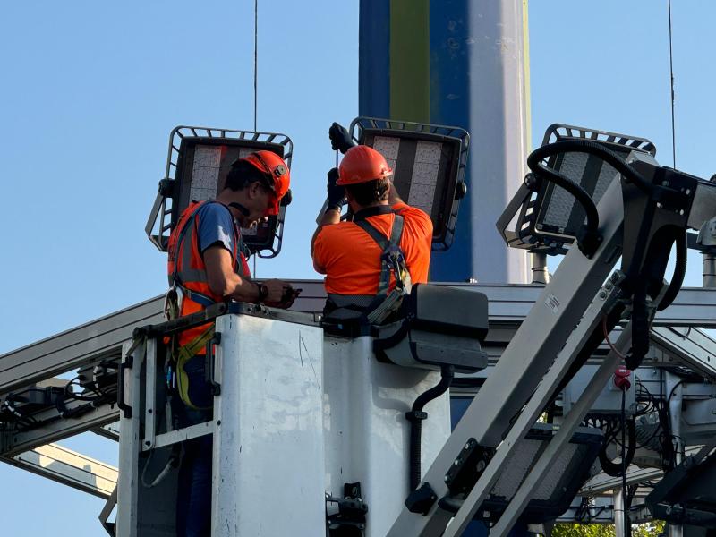 El servicio de Alumbrado Público está sustituyendo 71 proyectores antiguos de vapor de sodio de las dos torres de iluminación.