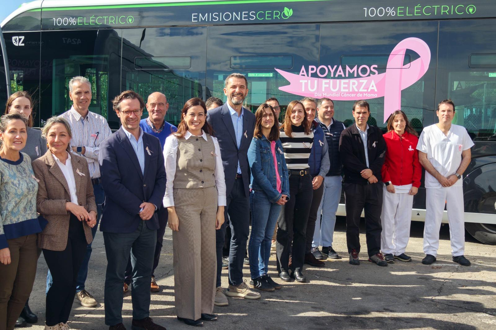Por su parte, Avanza, concesionaria del servicio de autobús urbano, ha vinilado cuatro buses con el lema "Apoyamos tu fuerza" enmarcado en el lazo rosa que caracteriza toda la campaña. Los empleados también tienen a su disposición pins con lazos rosas.