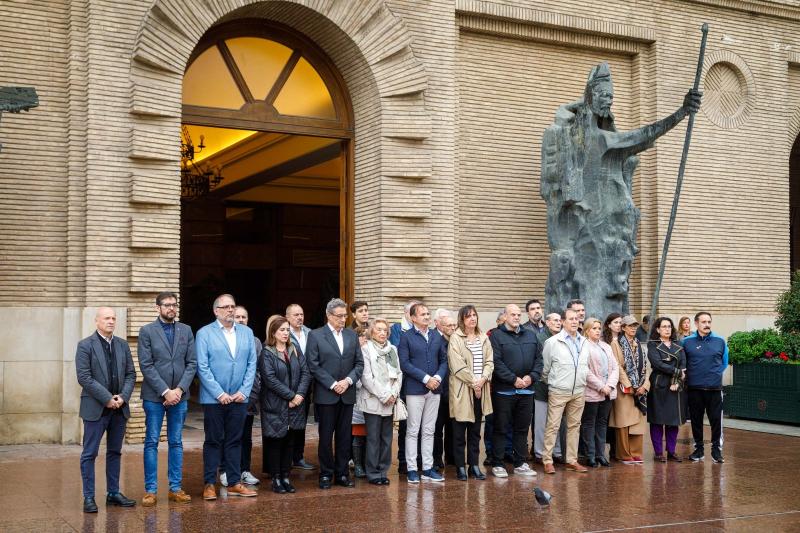 El Ayuntamiento de Zaragoza se ha sumado este miércoles al minuto de silencio convocado por la Federación Española de Municipios y Provincias, en señal de duelo por los fallecidos en Valencia y Albacete, como consecuencia del temporal de lluvias y la DANA que está afectando gravemente a esta zona del país.