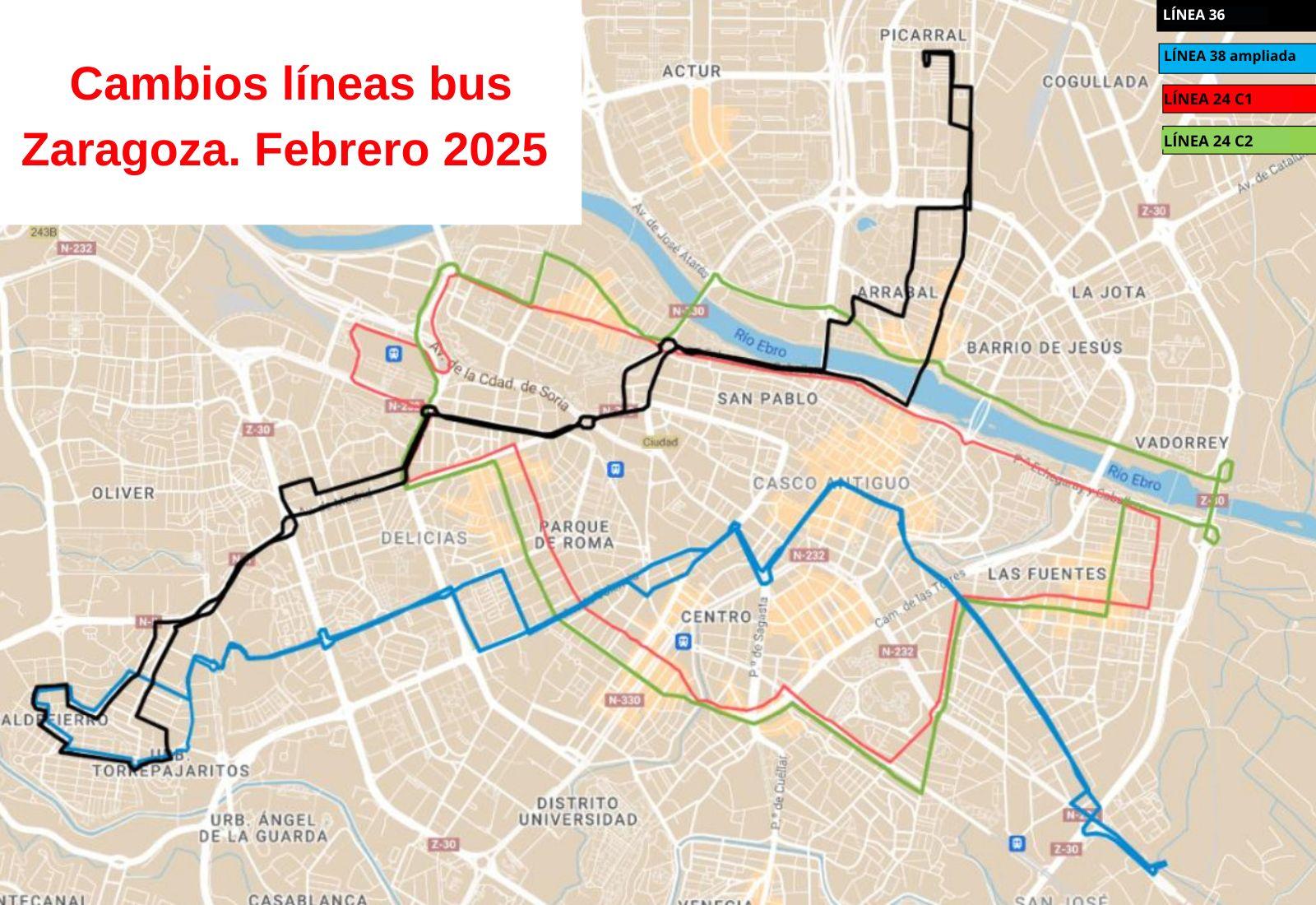 Al proyecto de las circulares hay que sumar la ampliación de la línea 38, que se adentrará en Valdefierro para ofrecer una nueva ruta de llegada y salida del barrio y que, en su núcleo final, compartirá trayecto con la línea 36. Ambas mantendrán sus frecuencias actuales.