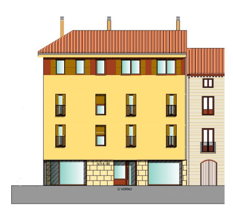 Cada una de las viviendas cuenta con vestíbulo, salón-comedor-cocina, baño completo y dos dormitorios, uno doble y otro sencillo. Todas las viviendas tienen una superficie inferior a 70m², disponen de un trastero en sótano y no tienen plaza de garaje. La entrada se efectuará también por la calle Horno.