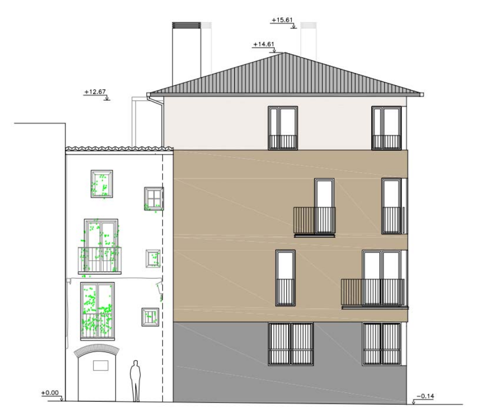 El proyecto supone construir un inmueble de 14 viviendas: 9 de tres dormitorios, 2 de cuatro dormitorios y una de dormitorio. Además, habrá dos locales en la planta baja y 14 plazas de aparcamiento. Las cuatro plantas sobre el local tendrá cada una 3 viviendas de aproximadamente 80, 58 y 82 m². Y en el ático o quinta planta habrá dos viviendas más de unos 70 m² cada una.
