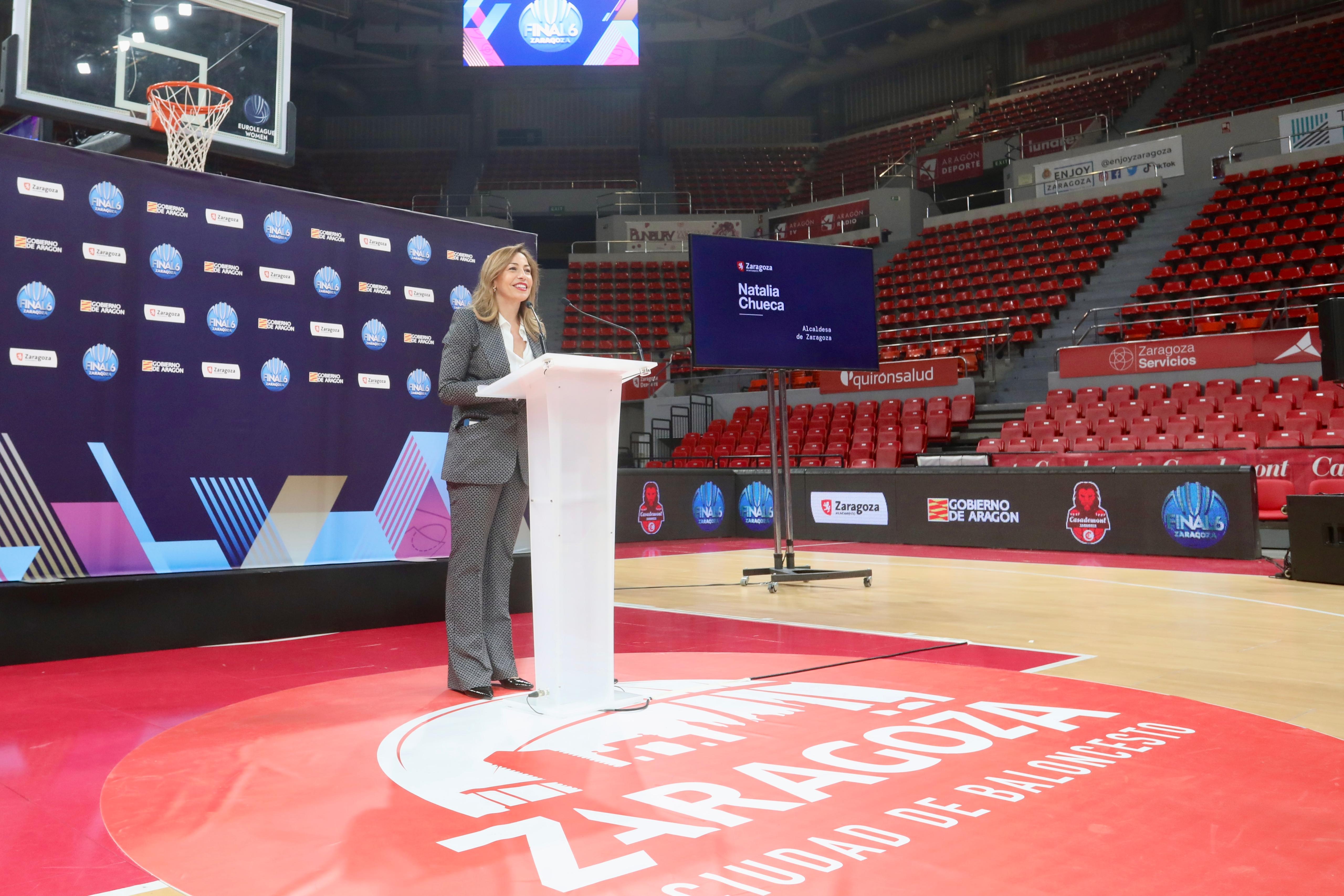 Este hito histórico será posible gracias a la colaboración entre el Ayuntamiento de Zaragoza, el Gobierno de Aragón, el club Basket Zaragoza 2002 y FIBA Europa, tal y como han explicado las cuatro entidades en el acto que ha tenido lugar en el Pabellón Príncipe Felipe. Han intervenido la alcaldesa Natalia Chueca, el presidente Jorge Azcón, el presidente de FIBA Europa, Jorge Garbajosa, y el director ejecutivo de FIBA, Kamil Novak.