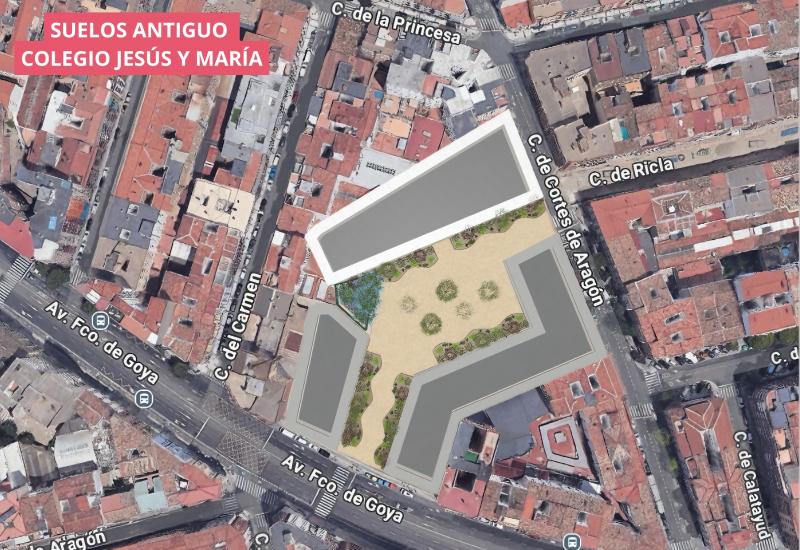 De este modo, la promotora tendrá luz verde para levantar 160 pisos dentro de una parcela cuya superficie total es de 8.952,03 metros cuadrados. Los dos edificios se ubicarán en los laterales del ámbito, abriendo así un gran espacio público central que será peatonal, conectará la avenida Goya con la calle de Cortes de Aragón y cuyos costes urbanización recaerán en la empresa propietaria de los suelos.