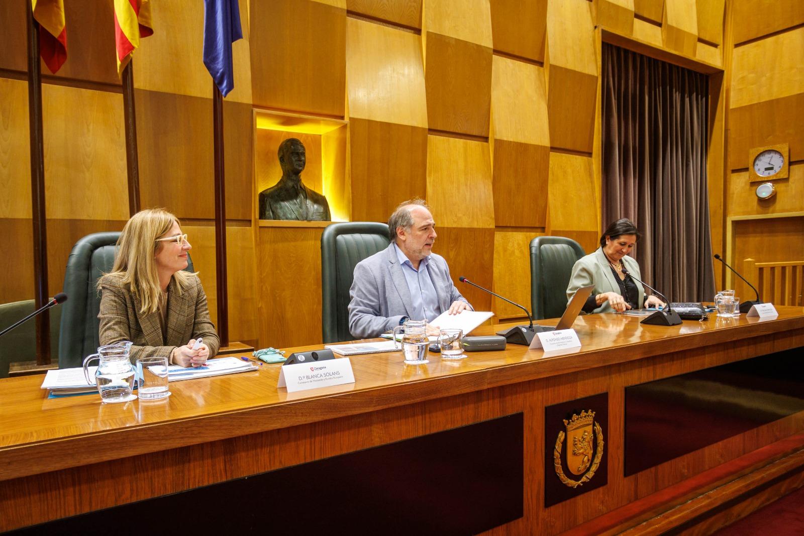 La consejera de Hacienda y Fondos Europeos del Ayuntamiento de Zaragoza, Blanca Solans, ha presentado el proyecto de Presupuesto de 2025 en el Consejo de Ciudad, donde ha sido compartido y debatido con el tejido social y vecinal. Han asistido también el consejero de Participación y Régimen Interior, Alfonso Mendoza, la concejal delegada de Barrios Rurales, Paloma Espinosa, y de Contratación y Bienes Municipales, Pilar Cortés.