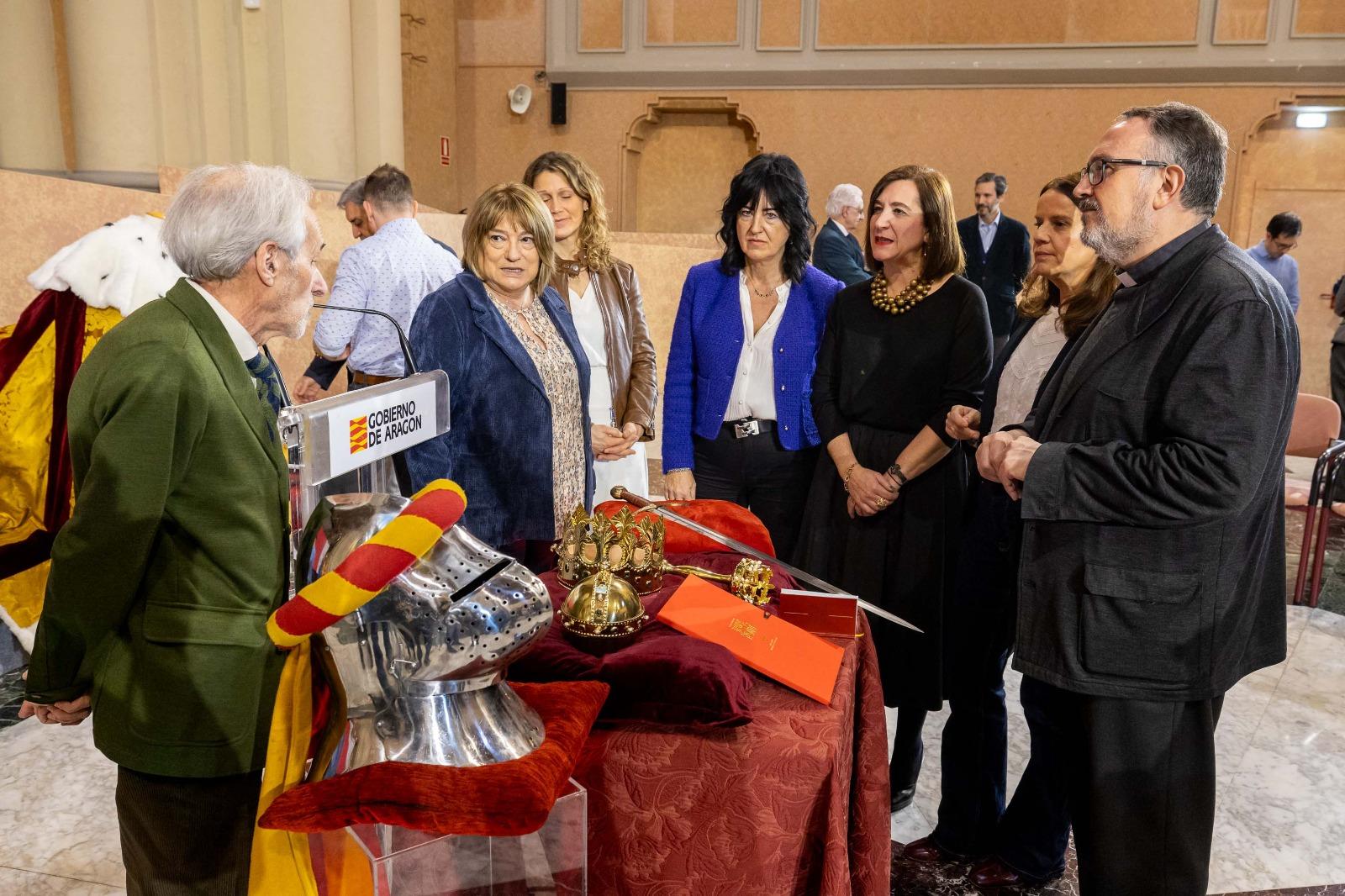 La consejera de Cultura, Educación y Turismo, Sara Fernández, ha participado esta mañana en la presentación en la que se ha dado a conocer este evento, junto con la consejera de Educación, Cultura y Deporte del Gobierno de Aragón, Tomasa Hernández; la directora general de Patrimonio Cultural, Gloria Pérez; los historiadores y profesores de la Universidad de Zaragoza, expertos en historia medieval, José Luis Corral y Esteban Sarasa, la adjunta a la dirección del gabinete de la Presidencia de las Cortes de Aragón, Arancha Echevarría-Torres; y el delegado capitular de culto y pastoral del Cabildo Metropolitano de Zaragoza, José Antonio Calvo.