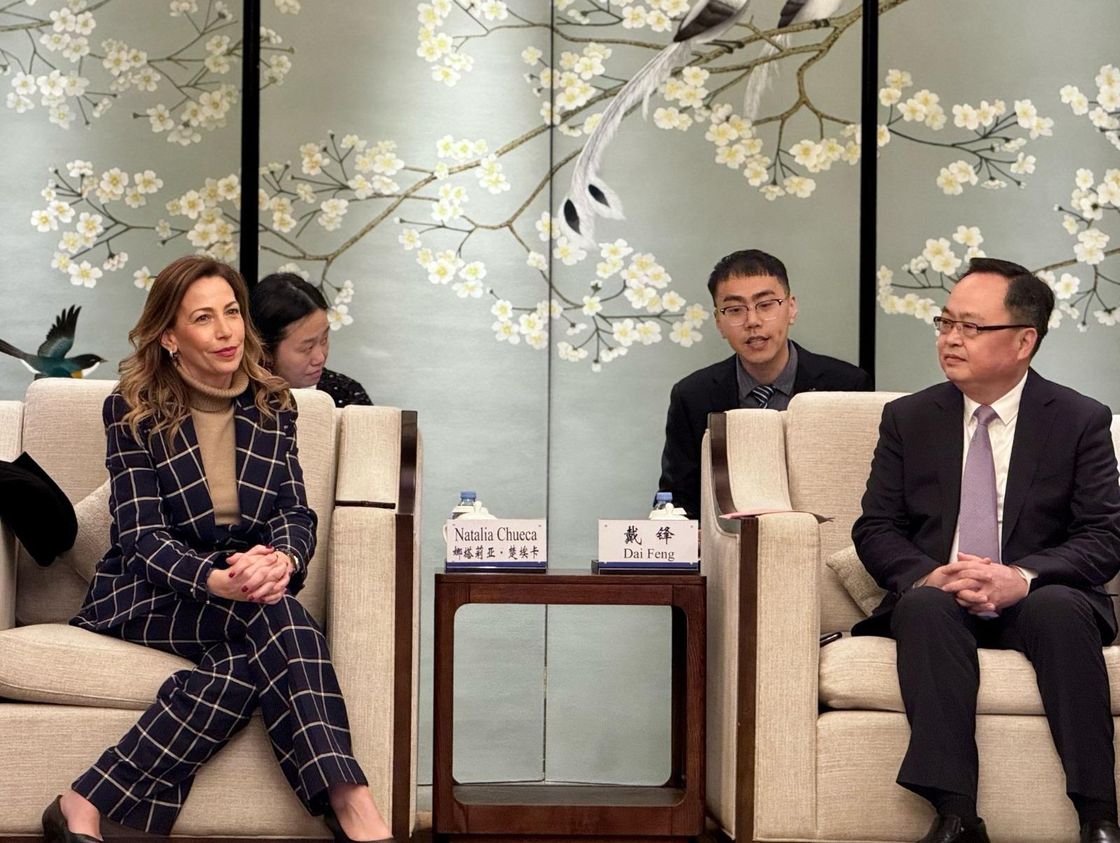 La alcaldesa se ha reunido también con el alcalde de Jiaxing, ciudad referente sectores clave como la logística, el textil y la innovación industrial, para avanzar en el alcance de la colaboración suscrita en 2023