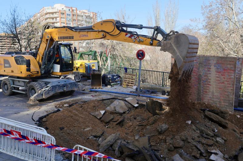 Los trabajos de renovación de la red de saneamiento que se están ejecutando obligarán a cortar, a partir de este jueves 20 de febrero, el tránsito por la pasarela peatonal que conecta las dos riberas. Esta infraestructura, que tiene un alto uso por parte de los vecinos del entorno y de la comunidad educativa del CEIP Basilio Paraíso y del pabellón polideportivo La Salle-Gran Vía, permanecerá cerrada durante un mes para garantizar la seguridad durante la actuación.
