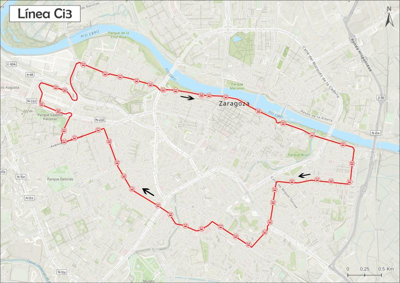 La red de autobús urbano de Zaragoza estrenará este lunes las dos nuevas líneas circulares exprés, Ci3 y Ci4, así como las mejoras en las líneas 38 y 36