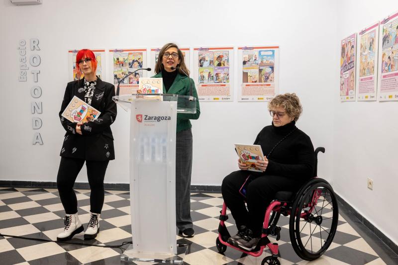El cómic ha sido presentado hoy por la consejera de Políticas Sociales, Marian Orós, junto a la autora y representantes de Amanixer, en la rotonda de la Casa de la Mujer, donde se exponen algunas de las las viñetas de las publicaciones anteriores en una muestra que se podrá ver hasta el 11 de abril.