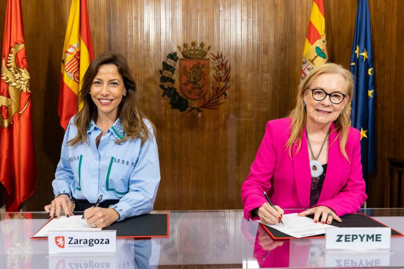 La alcaldesa Natalia Chueca y la presidenta de ZEPYME, María Jesús Lorente, han firmado un convenio dirigido a optimizar el acceso del tejido empresarial zaragozano a financiación comunitaria y a programas vinculados a la Misión de Ciudades Inteligentes y Climáticamente Neutras