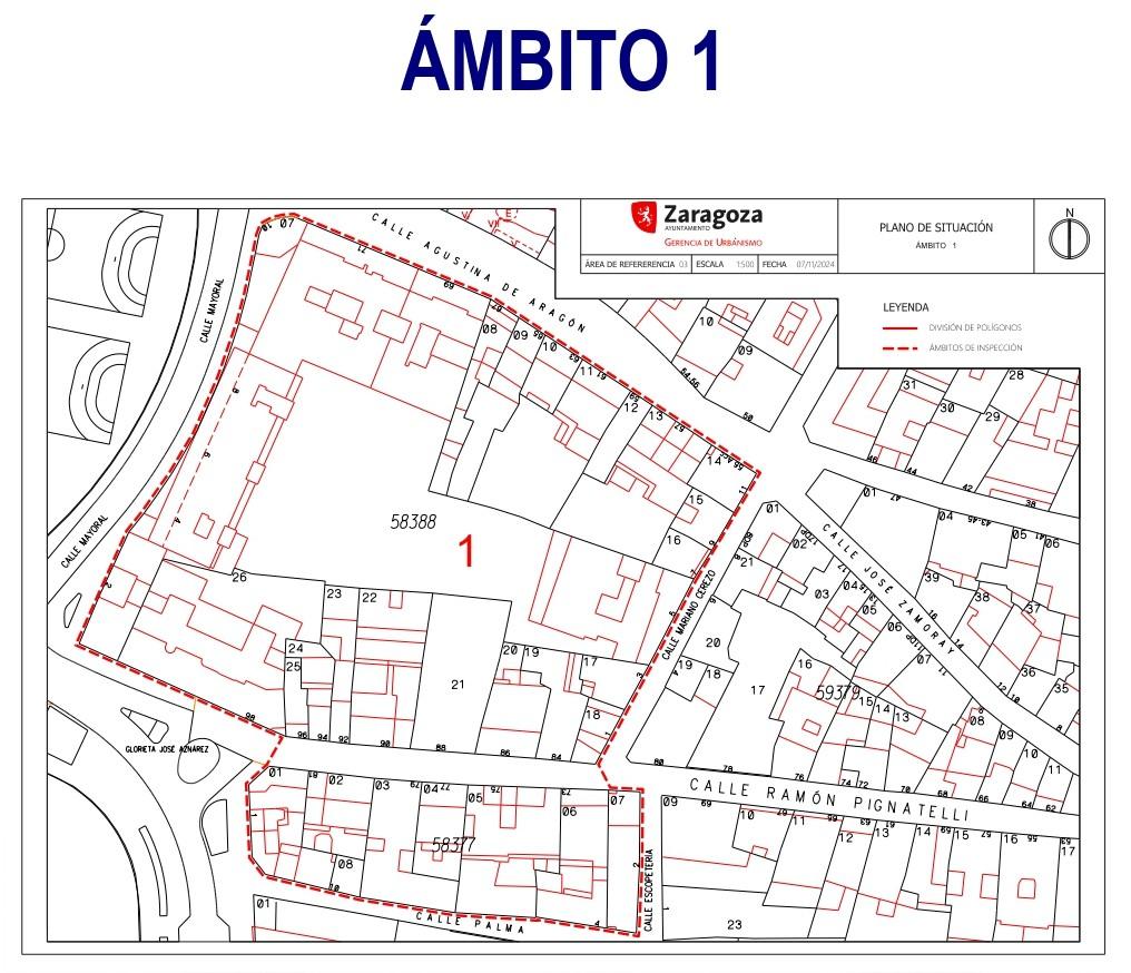 De este modo, equipos municipales comienzan así 30 semanas, unos siete meses, en las que girarán un total de 230 visitas de inspección, a razón de 2 inspecciones por técnico y por semana. Para ello, se ha dividido el mapa del barrio en 14 tramos o áreas por las que irán pasando el equipo de técnicos o agentes inspectores municipales compuesto por 4 arquitectos técnicos y 2 arquitectos con la colaboración de personal jurídico y administrativo de este mismo Servicio de Inspección Urbanística del Ayuntamiento de Zaragoza. La primera zona en ser inspeccionada son las manzanas comprendidas entre las calles Agustina de Aragón, Mariano Cerezo, Escopetería, glorieta José Aznárez y calle Mayoral, que engloban a 38 inmuebles. Posteriormente se irán repasando el resto de los trece sectores, que tienen un total de 277 edificios.
