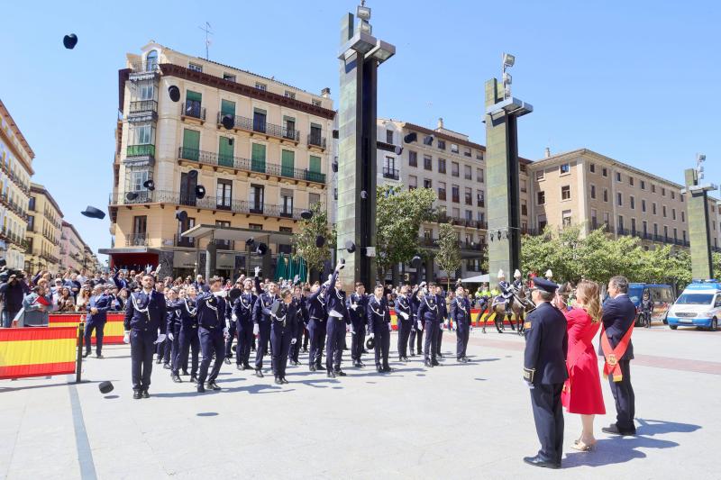 La Policía Local de Zaragoza ha recibido este miércoles la máxima distinción de la Ciudad de la mano de la alcaldesa Natalia Chueca. La entrega de este reconocimiento con motivo del 175 aniversario del Cuerpo ha tenido lugar en la plaza del Pilar, donde también se han entregado los despachos a la nueva promoción que se incorpora.