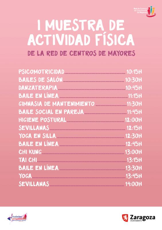 Esta I Muestra de Actividad Física al aire libre, en la Plaza del Pilar, es un reflejo de la nueva forma que tienen las personas mayores de afrontar esta etapa de la vida: su preocupación por la salud y condición física, sus capacidades y constancia para la práctica regular de la actividad física, su interés por mantenerse saludables, su consciencia de los beneficios del ejercicio conforme se van cumpliendo años y su empeño por ser parte activa de la sociedad y mantener su relación con los demás y con su entorno.