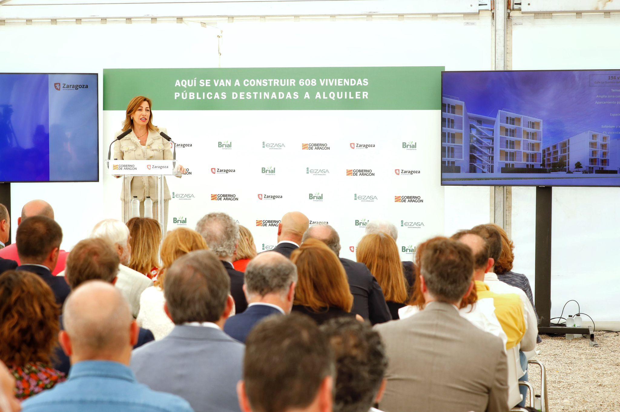 A juicio del presidente Azcón, "la colocación de la primera piedra de estas 608 viviendas refrenda el clima de colaboración entre el Gobierno de Aragón y el Ayuntamiento de Zaragoza y confirma la intención de ir de la mano para dar solución al gravísimo problema de falta de vivienda".
