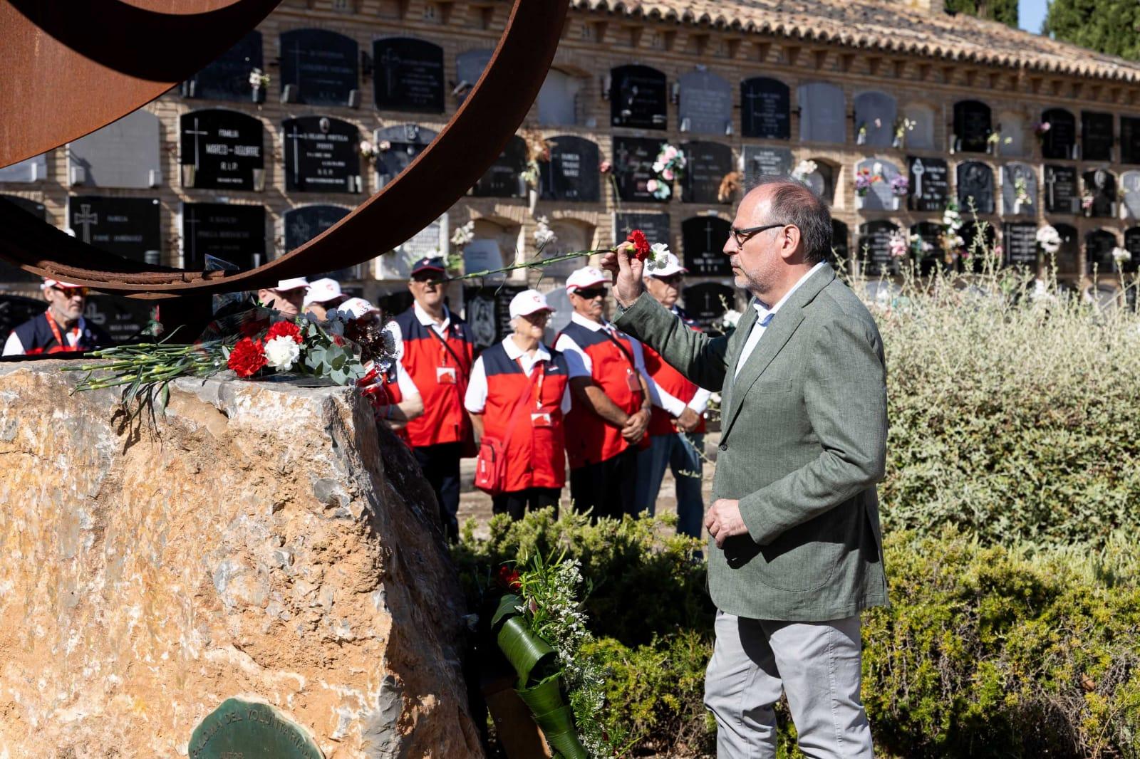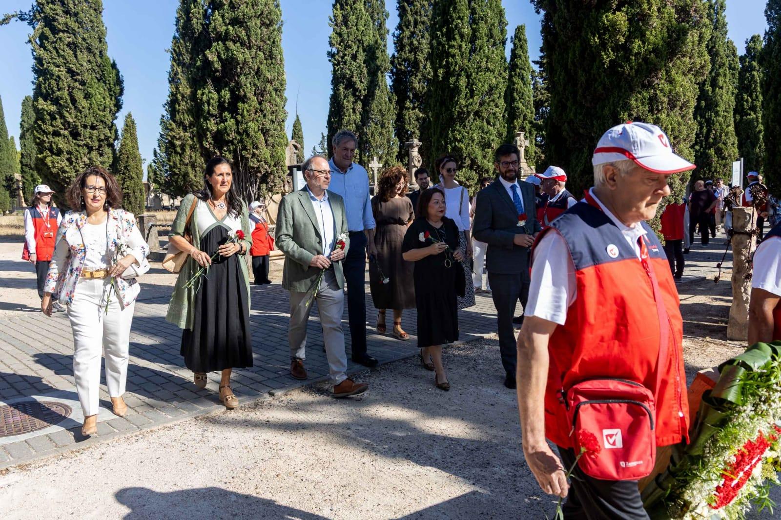 El recuerdo por los que ya no están ha congregado hoy a los voluntarios municipales, en una ofrenda en el cementerio antiguo de Torrero