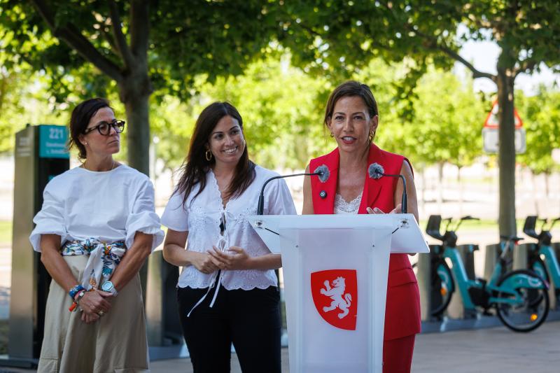 La alcaldesa de Zaragoza, Natalia Chueca, ha presentado hoy la puesta en marcha de la nueva red, que duplica el tamaño de la anterior y en la que todas sus bicis son eléctricas con pedaleo asistido