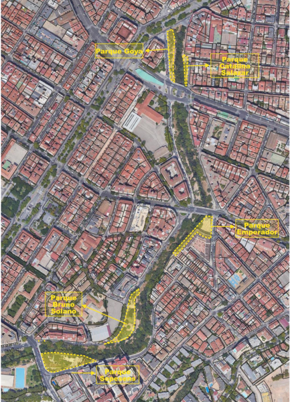 Las actuaciones darán lugar a una infraestructura verde con cinco nuevos parques, la renovación de otras tres zonas verdes y la integración de hasta ocho calles del entorno