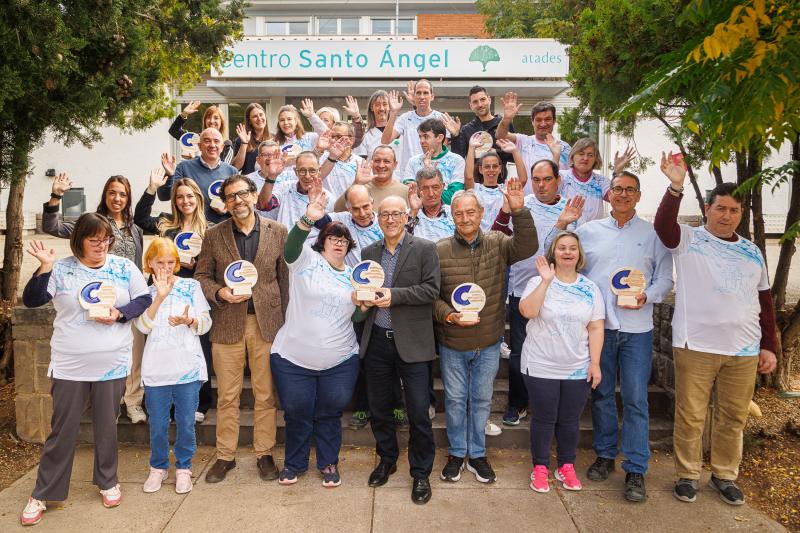 Por parte de la junta de gobierno de ATADES han asistido Teresa Escamez y Laura Larriba, además de la directora del Centro Ocupacional y Residencial Santo Ángel, María Urroz y el coordinador de los talleres ocupacionales, Raúl Morales. Los propios usuarios de la asociación serán los encargados de entregar los trofeos el día de la carrera. Durante la visita, cada participante del taller ha recibido una bolsa del corredor.