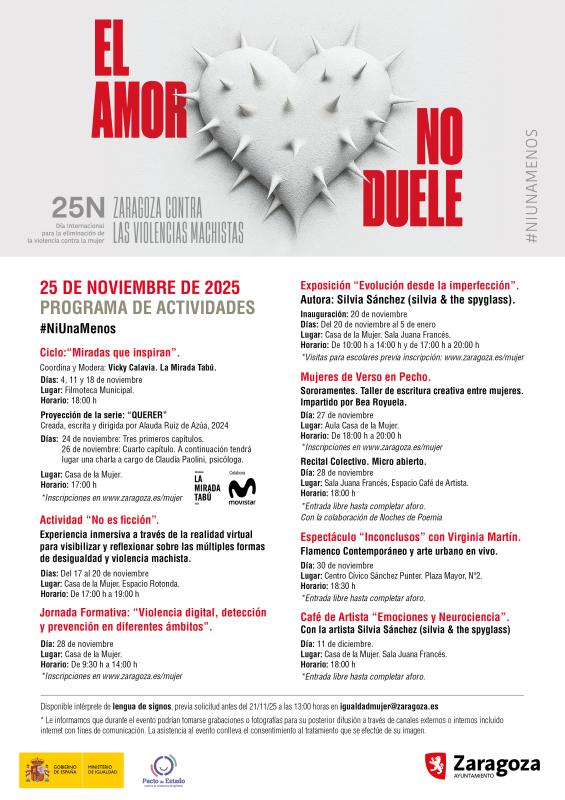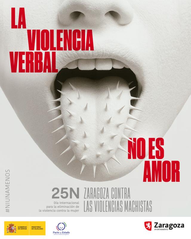 Con el lema de 'Zaragoza contra las violencias machistas' y 'Ni una menos', la propuesta de este año deja claro que la violencia no es amor y que esta no solo se limita al maltrato físico, sino que se manifiesta previamente en conductas que ridiculizan, humillan o desprecian. Es decir, la violencia verbal es un signo claro de maltrato que es necesario "identificar y visibilizar como algo que no se puede tolerar ni minimizar".