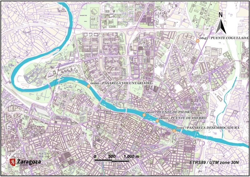 El puente de Piedra, el puente de Hierro, el puente sobre el ferrocarril en la carretera de Cogullada, la pasarela del Voluntariado, y el puente sobre la desembocadura del Huerva en la ribera del Ebro. Estas cinco infraestructuras serán las primeras en beneficiarse del Plan de Puentes de la ciudad, cuyo análisis y propuestas empezará ahora el Ayuntamiento de Zaragoza. Para ello, el Servicio de Conservación de Infraestructuras va a lanzar un contrato para la redacción de proyectos por valor de 199.831,5 euros, IVA incluido, y que estarán listos en cuatro meses.
