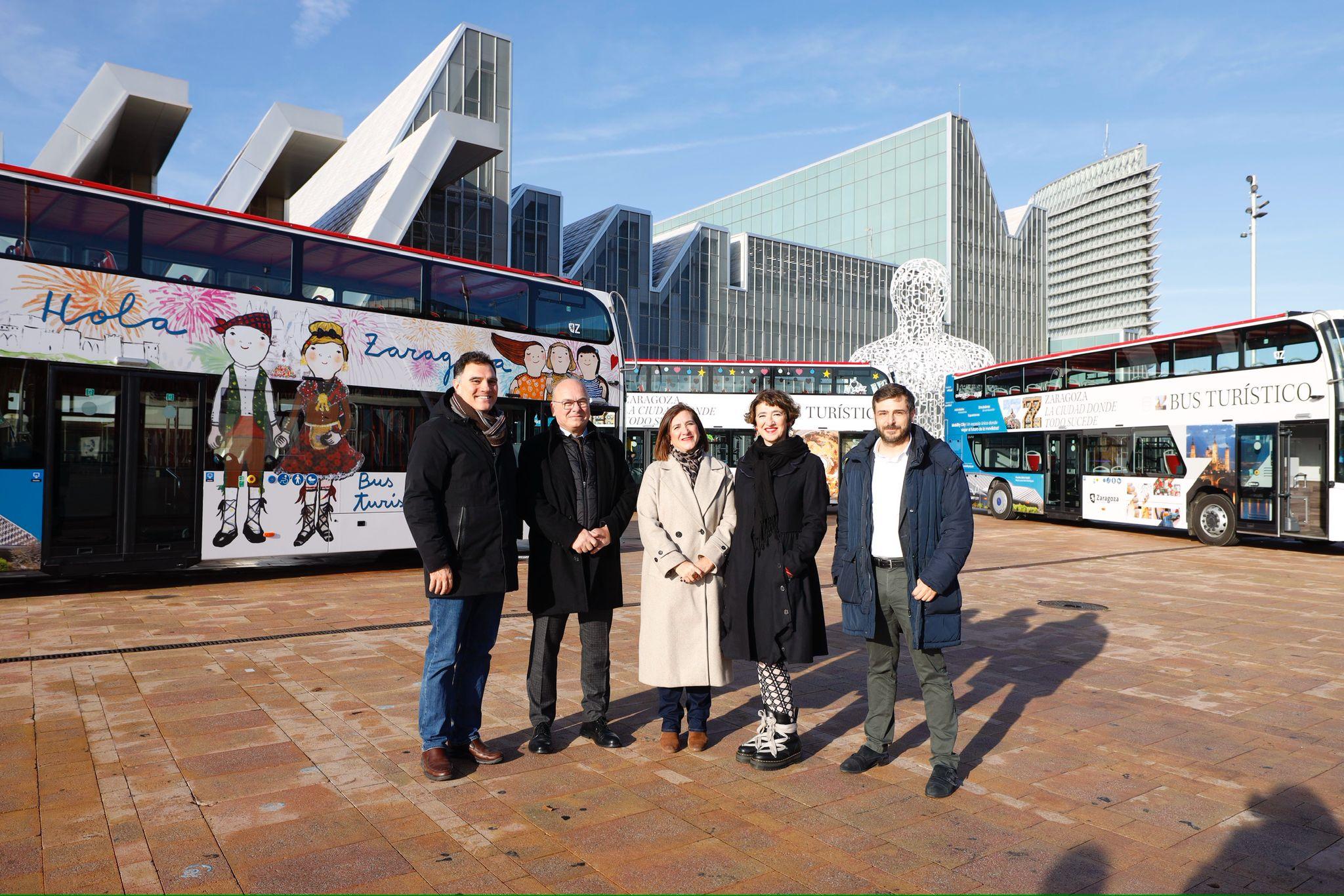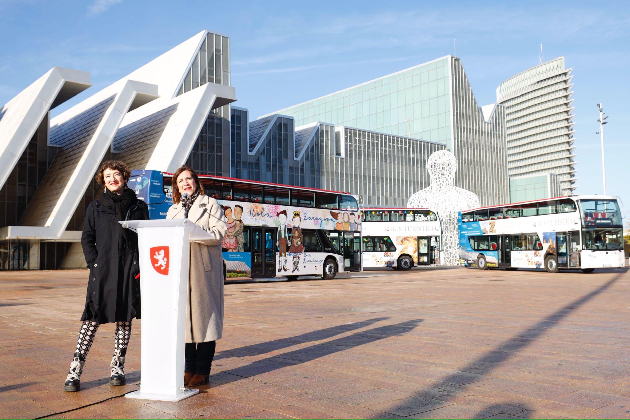El segundo de los buses ha sido vinilado con la nueva imagen turística de la ciudad simbolizada en una ventana con forma de Zeta, presentada el pasado mes de septiembre, mientras que el tercero, que también lleva la imagen de la nueva marca, luce para estos días una decoración navideña. Con este bus, se realizará un recorrido de una hora de duración para contemplar la ciudad iluminada con las luces navideñas. La consejera de Turismo, Sara Fernández, ha afirmado que Zaragoza vive un momento único con un incremento notable del número de turistas en el último año. "Cada vez más turistas quieren conocer nuestra ciudad atraídos por su gran oferta turística, desde el patrimonio monumental y artístico hasta la gastronomía la agenda cultural o los eventos deportivos. Y en este contexto, queremos mostrar a los visitantes nuestra mejor imagen y el proyecto de ciudad sostenible que estamos construyendo", ha indicado.