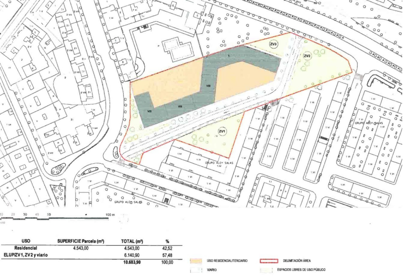 "De este modo podrá cambiarse la calificación del suelo, pasando de zona E a zona G, apoyado en un interés público, tal y como ha sucedido con otros entornos industriales rodeados de trama urbana residencial, y se da solución a una reivindicación vecinal y ciudadana histórica", ha apuntado el teniente de alcalde. El área de intervención E-7 linda al noreste con el paseo de Echegaray y Caballero, al sureste con el conjunto Aloy Sala, al suroeste con una zona verde de superficie triangular al servicio del conjunto y con la calle Félix Rodríguez de la Fuente, y al oeste con la calle Monreal. Han trascurrido más de dos décadas desde la aprobación definitiva del Plan General de Ordenación Urbana que contemplaba la calificación de este ámbito como zona E, lo que suponía tolerar el uso existente industrial hasta su transformación a residencial por extinción o traslado de la actividad.