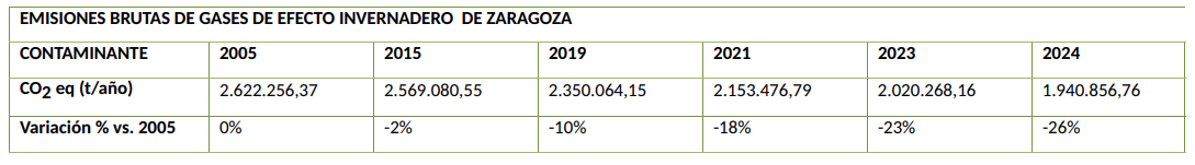 Paralelamente, el último Inventario de Emisiones de la Ciudad muestra también una reducción sostenida desde 2019 de las emisiones industriales en Zaragoza