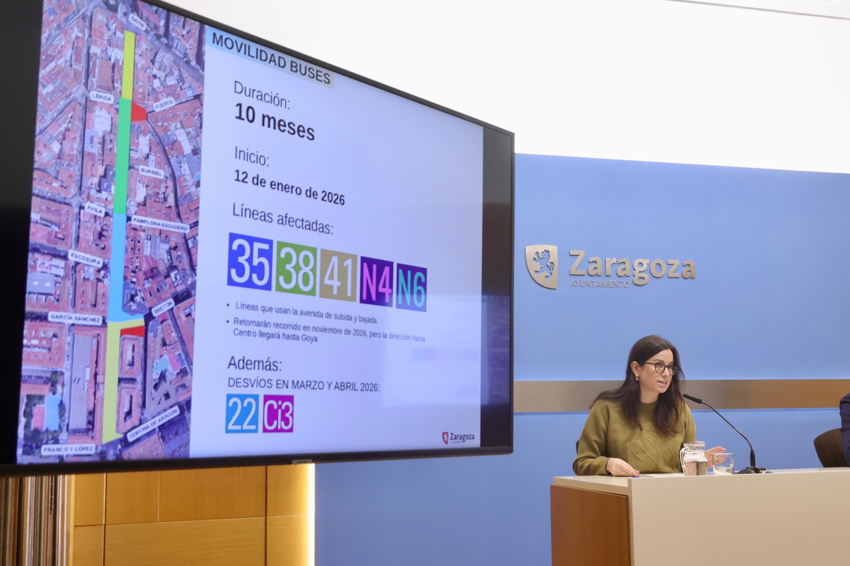 "Esas son las principales novedades que todos los ciudadanos que emplean estas líneas deben conocer, si bien habrá un periodo de dos meses, entre marzo y abril de 2026, que las líneas 22 y Ci3 sufrirán un pequeño desvío porque se debe acometer, en la Fase 1B, la nueva conexión de Bretón con García Sánchez", ha resumido la consejera Gaudes.