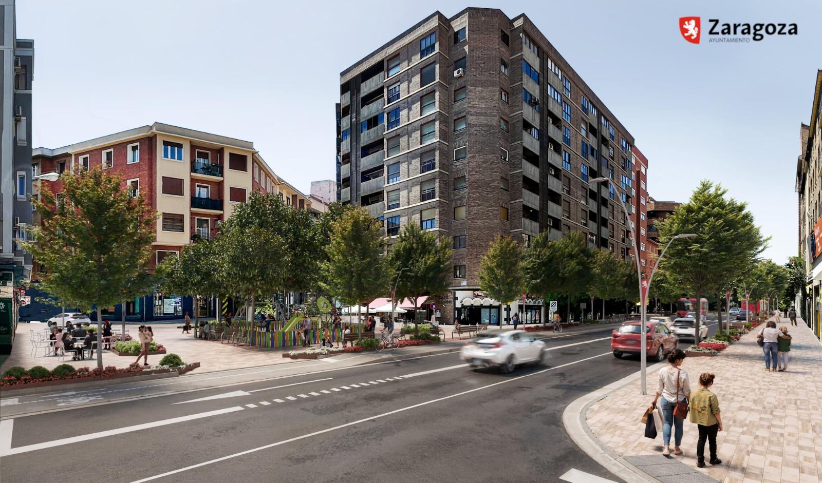 La remodelación abarca toda la avenida, desde el cruce con Goya hasta la calle Corona de Aragón. En total, cerca de 14.000 metros cuadrados que se van a reformar integralmente y donde se va a crear una nueva plaza arbolada con juegos infantiles y bancos. Este nuevo espacio estará ubicado en la confluencia de las calles Juan José Lorente y Fueros de Aragón, una zona que ahora está ocupada por coches, motos y autobuses. Además se reformará la intersección con la calle Tomás Bretón para ampliar también ese espacio y renovar totalmente el parque de juegos que ya existe.